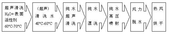 XCS—4G超聲波清洗機 XCS—4G超聲波清洗機是我公司研制生產(chǎn)的新一代超聲清洗設備,本機具有清洗速度快、質(zhì)量高的特點,對油脂、垢、石蠟、銹、氧化皮、表面涂層、膜、漆層和難以歸類的附著于物體表面的雜質(zhì)能進行徹底的清除。 三、清洗工藝流程圖